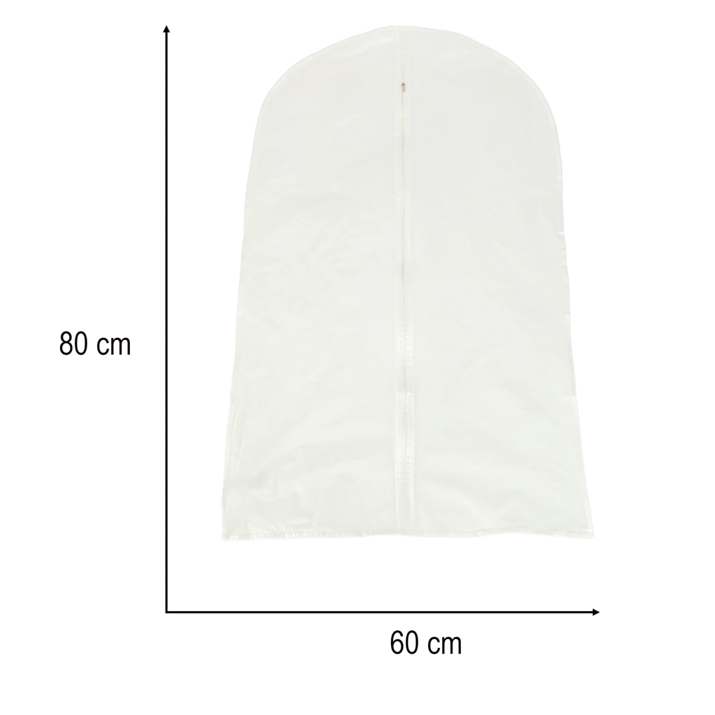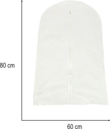 Praktiškas drabužių apsauginis dėklas, matmenys 60 × 80 cm, išlaiko jūsų sukneles, marškinius ar švarkus puikios būklės. Apsaugo nuo dulkių ir nešvarumų, turi permatomą medžiagą greitam atpažinimui ir užtrauktuką patogiam atidarymui – idealus spintai ir kelionėms.