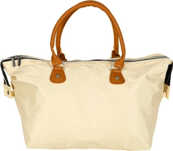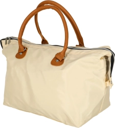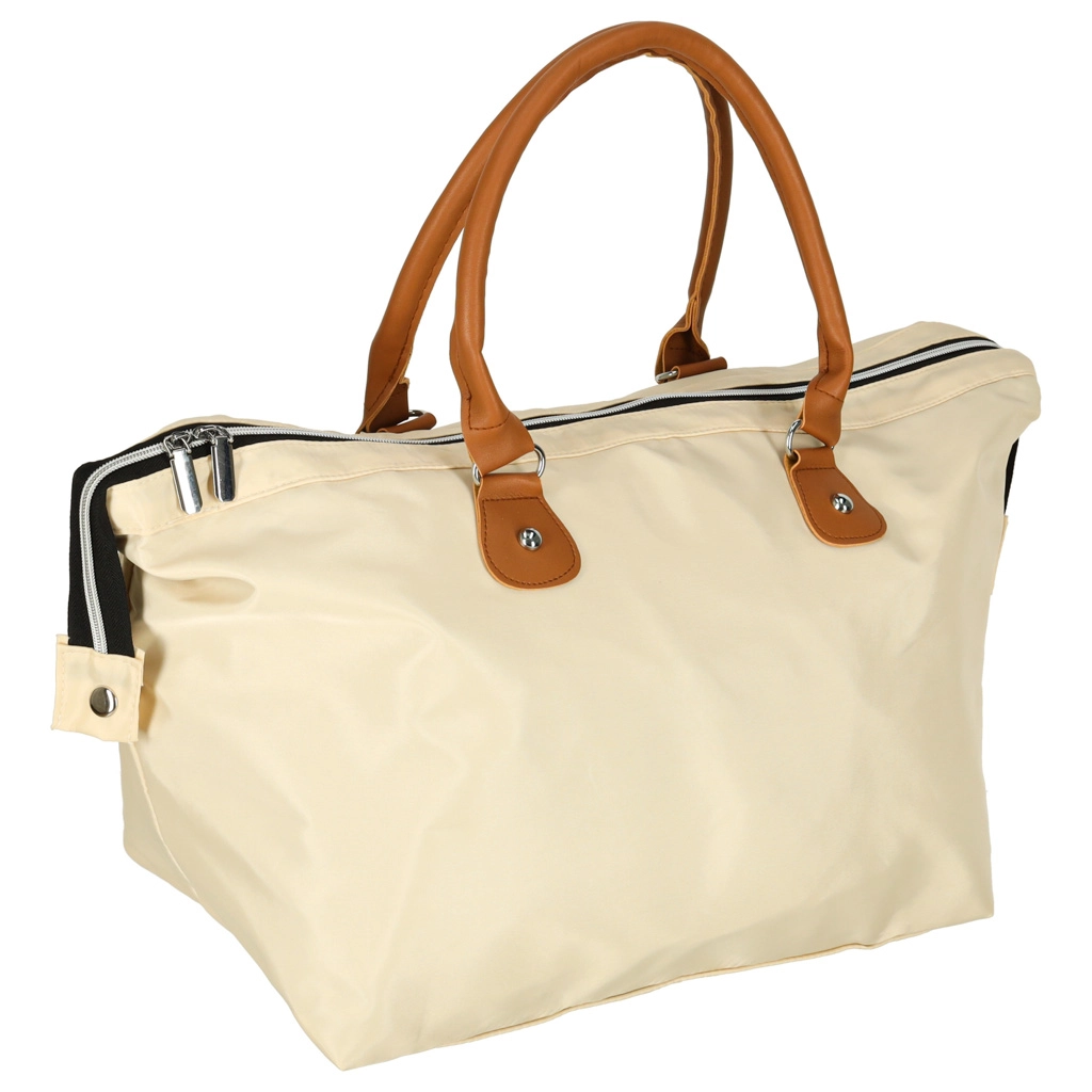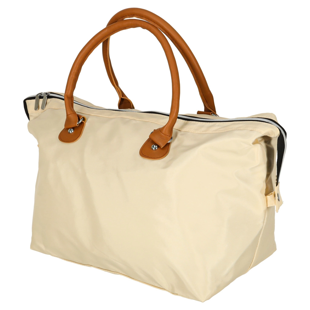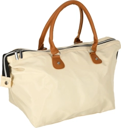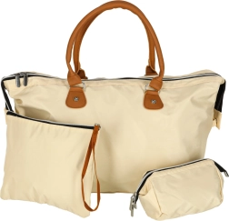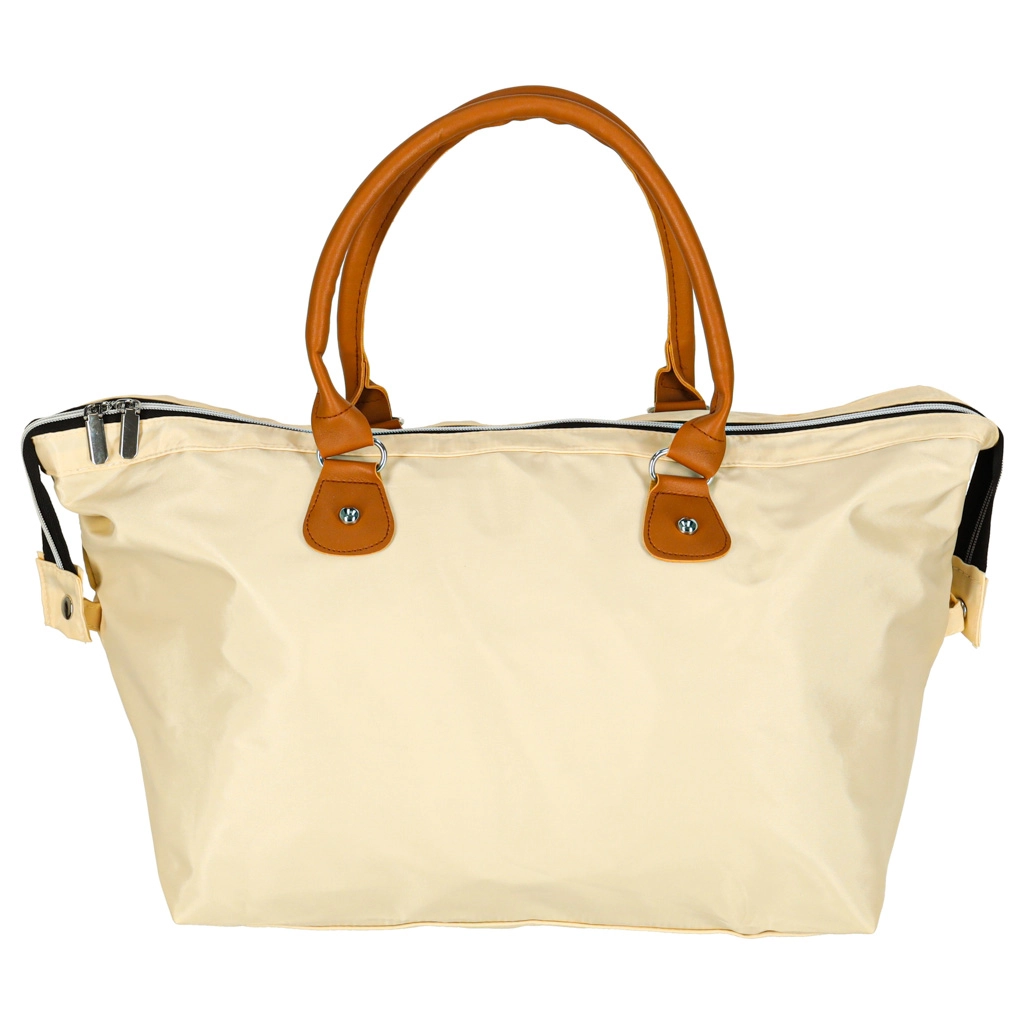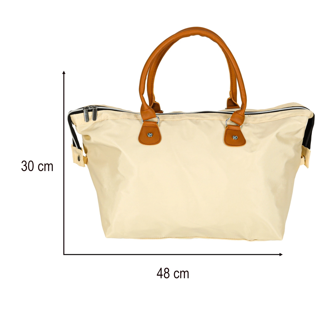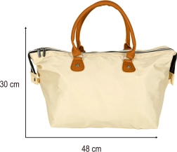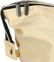 Didelis pagrindinis skyrius su užtrauktuku ir laikui nepavaldi smėlio spalva – universalus naudojimas prie vežimėlio ar kaip kelioninė kuprinė.