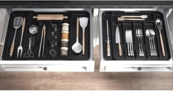 Aiškus suskirstymas stalo įrankiams ir virtuvės įrankiams paspartina gaminimą ir pagerina kasdienės virtuvės veiklos organizavimą.