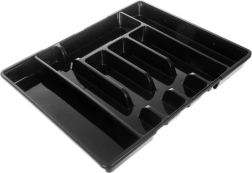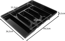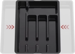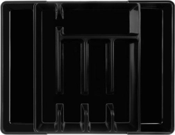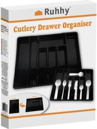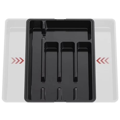 Praktiškas juodas stalčiaus organizatorius su išplečiamu mechanizmu lengvai prisitaiko prie stalčiaus pločio ir padeda laikyti visus stalo įrankius bei virtuvės įrankius savo vietoje. Pagamintas iš patvaraus PP, turi lygų paviršių lengvam valymui ir siūlo net iki 7 aiškių skyrių. Idealu universaliam naudojimui, greitai tvarkai ir moderniai išvaizdai kiekvienoje virtuvėje.