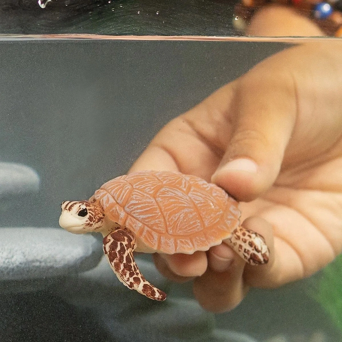 Išsamiai išdirbtas šarvas, tekstūruoti pelekai ir tikroviškos spalvos paverčia tikrosios vėžlio figūrėlę autentišku modeliu, tinkančiu žaidimams ir kolekcijai.