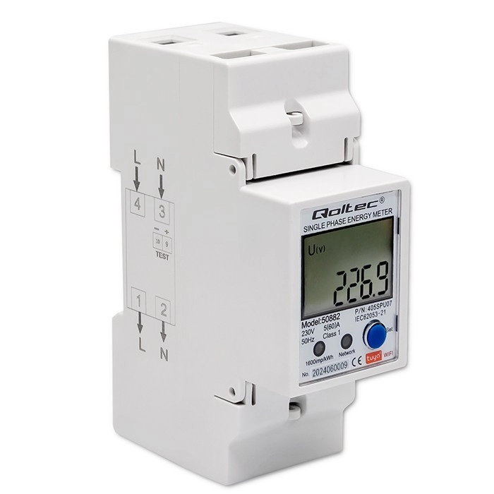 Integruotas Wi‑Fi modulis leidžia nuotoliniu būdu stebėti per TUYA programėlę – iš bet kur sužinosite einamąsias ir sukauptas sąnaudas ir lengvai identifikuosite daugiausia kainuojančius įrenginius. Įrenginys atitinka IEC 62053‑21 ir DIN EN50022 standartus, turi tikslumo klasę 1.0, tiesioginį matavimą 5(60) A, todėl tinka plačiam panaudojimo spektrui.