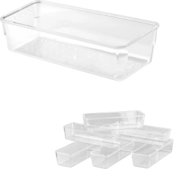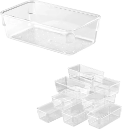 Palaikykite tvarką kiekviename stalčiuje ir ant stalo su 25 skaidrių akrilinių organizatorių rinkiniu, keturių dydžių. Dėl jų universalaus pritaikymo, skaidraus matomumo ir patvaraus akrilo lengvai surūšiuosite smulkmenas biure, vonioje, virtuvėje ir dirbtuvėse.