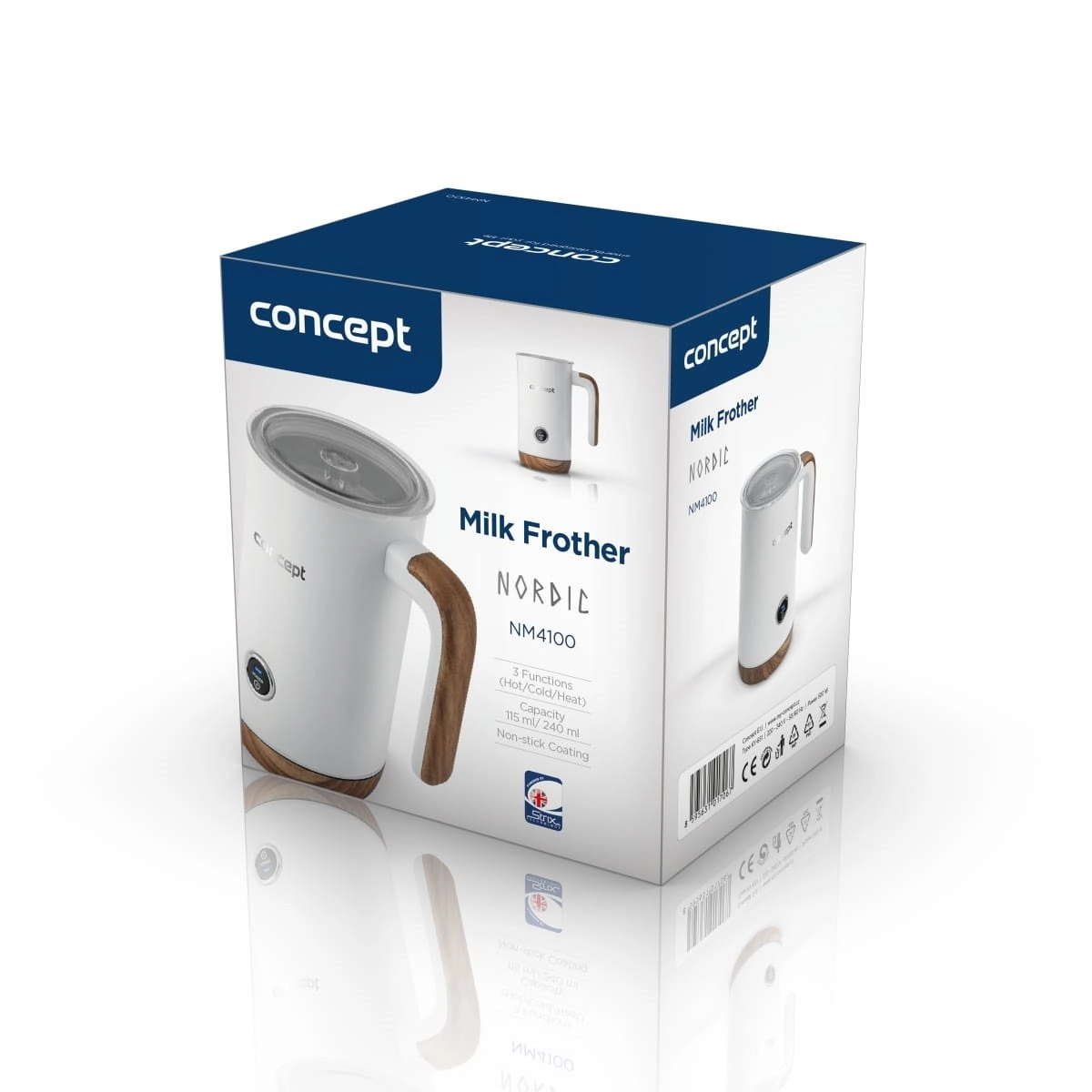 Įrenginys aprūpintas britišku STRIX jungikliu ir nelipnia danga, kuri neleidžia pienui prisvilti. Apsauga nuo perkaitimo ir pasukama bazė užtikrina saugumą bei patogų naudojimą.