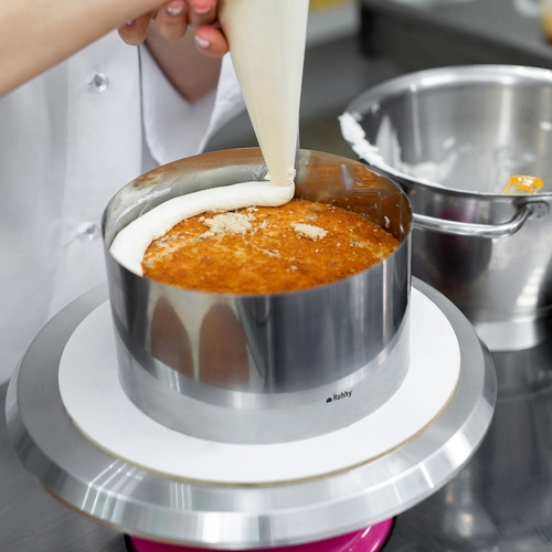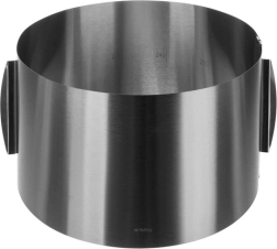 Profesionalus nerūdijančio plieno tortų žiedas su tolygiu 16–30 cm skersmens reguliavimu ir papildomu 20 cm aukščiu. Dėl tvirtų sagtelių yra stabilus, sandarus ir tinkamas aukštiems daugiasluoksniams tortams. Lengvai reguliuojamas be įrankių, tinka bet kuriai orkaitei ir gali būti plaunamas indaplovėje.