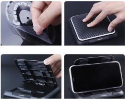 Aukštos kokybės klijai ir neslystantis paviršius užtikrina stabilumą ant lygių ir lengvai faktūruotų prietaisų skydelio ar stalo paviršių, nepaliekant žymių nuėmus.