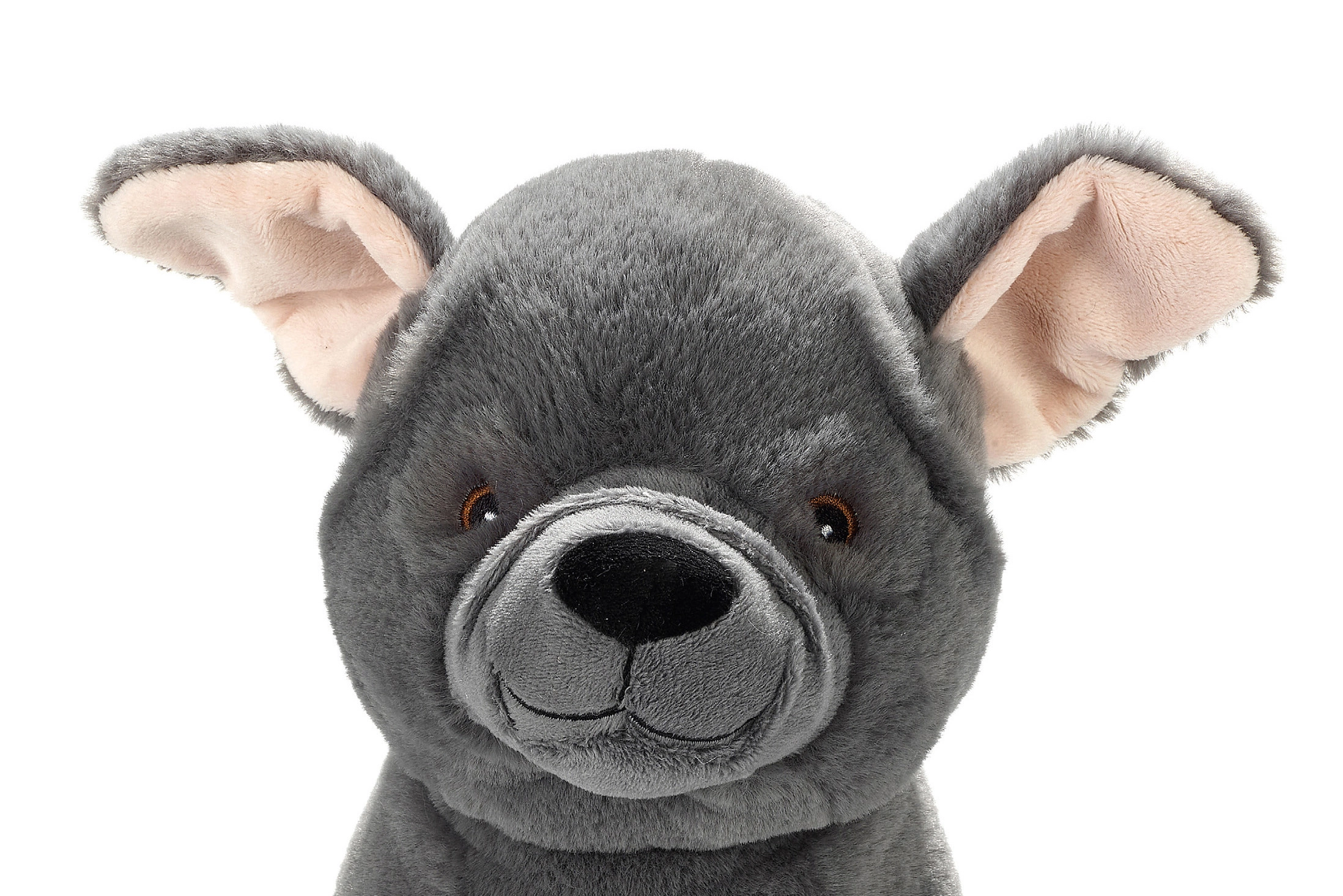 Mielas pliušinis šuniukas prancūzų buldogo stiliumi pradžiugins ir vaikus, ir suaugusiuosius. Jis pagamintas iš 100 % perdirbto plastiko, turi GLOBAL RECYCLED STANDARD sertifikatą ir išsiskiria aukšta kokybe bei labai malonia liesti medžiaga.