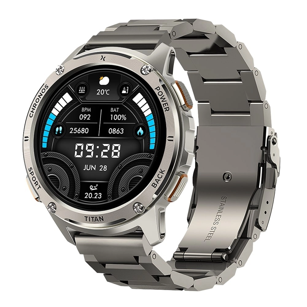 Maxcom Titan Chronos sukurti taip, kad tarnautų ilgai. Tvirtas nerūdijančio plieno korpusas, metalinė apyrankė ir ryškūs valdymo elementai suteikia laikrodžiui išvaizdą ir patvarumą, kuriuo galite pasitikėti. Lengvai įskaitomas ekranas aiškiai rodo laiką, datą, orus ir baterijos lygį, tad viską, kas svarbiausia, visada matysite.