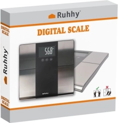 Išmanios analitinės svarstyklės RUHHY suteiks jums tikslų kūno rodiklių vaizdą: svorį 5–225 kg, BMI matavimą, kūno riebalų, vandens ir raumenų masės. Jos turi aiškų LCD ekraną, iki 10 naudotojų profilių su išmaniu atpažinimu ir paprastą valdymą SET/UNIT mygtukais. Patvari konstrukcija iš grūdinto stiklo ir ABS, automatinis išsijungimas ir vienetų pasirinkimas kg/lb/st patogiam visos šeimos naudojimui.