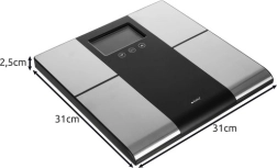 Aukšto tikslumo jutikliai ir kontaktiniai elektrodai užtikrina patikimą BMI bei riebalų, vandens ir raumenų masės apskaičiavimą. Rezultatai po matavimo automatiškai įrašomi į naudotojo profilį.