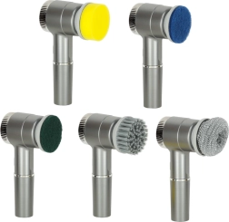 Penkių antgalių rinkinys padengia visas valymo situacijas: kempinėlė poliravimui, 2× tekstiliniai padai jautriems paviršiams, nailoninis šepetys siūlėms ir įsisenėjusiems nešvarumams bei grandiklis nuosėdoms. Greito fiksavimo mechanizmas užtikrina žaibišką galvučių keitimą be pastangų.