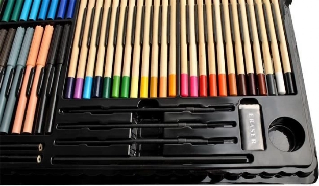 Puikus piešimo ir tapymo rinkinys siūlo viską, ko reikia tiek pradedantiesiems, tiek pažengusiems menininkams. Dėl plataus 288 elementų pasirinkimo jis leidžia įgyvendinti kūrybines idėjas ir lengvai transportuoti dėl praktiško lagamino.