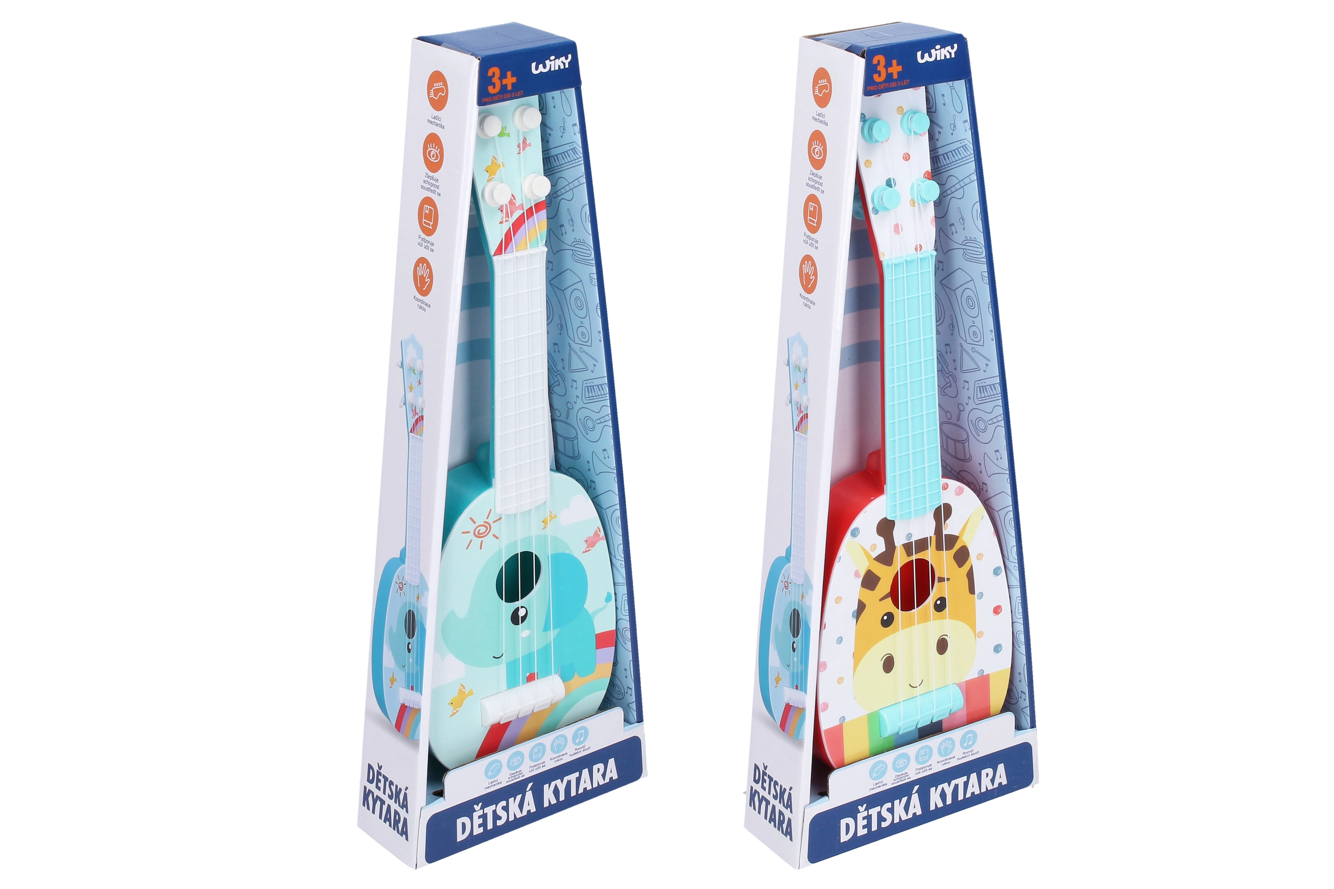 Ši vaikiška gitara su Afrikos gyvūnų motyvais idealiai tinka mažiesiems pradedantiesiems. Ji turi keturias sintetines stygas ir 37 cm ilgį, todėl ją patogu laikyti ir groti.