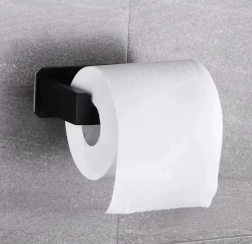Elegantiškas ir patvarus tualetinio popieriaus laikiklis iš nerūdijančio plieno, juodos matinės spalvos, tinka moderniems ir industrinio stiliaus vonios kambariams. Siūlo tvirtą tvirtinimą juosta, yra atsparus drėgmei ir gali būti nuimamas nepažeidžiant paviršiaus. Dėl sumanaus kabliuko galo ritinėlis nenuslysta, o įrankių nereikalaujanti montuotė yra greita ir švari.