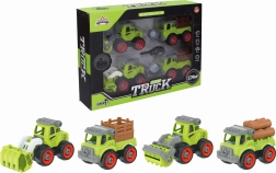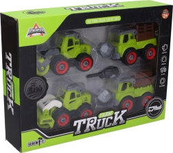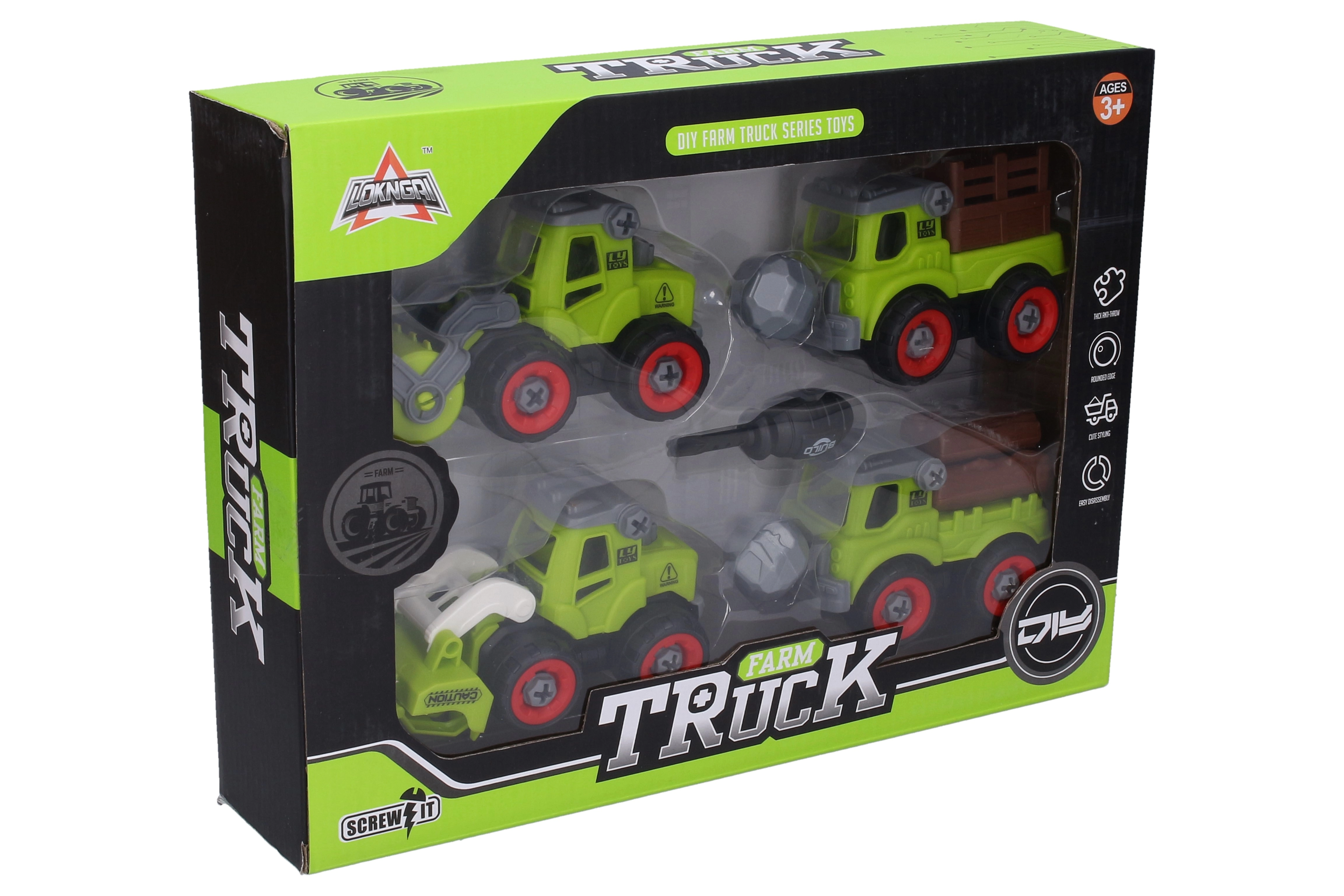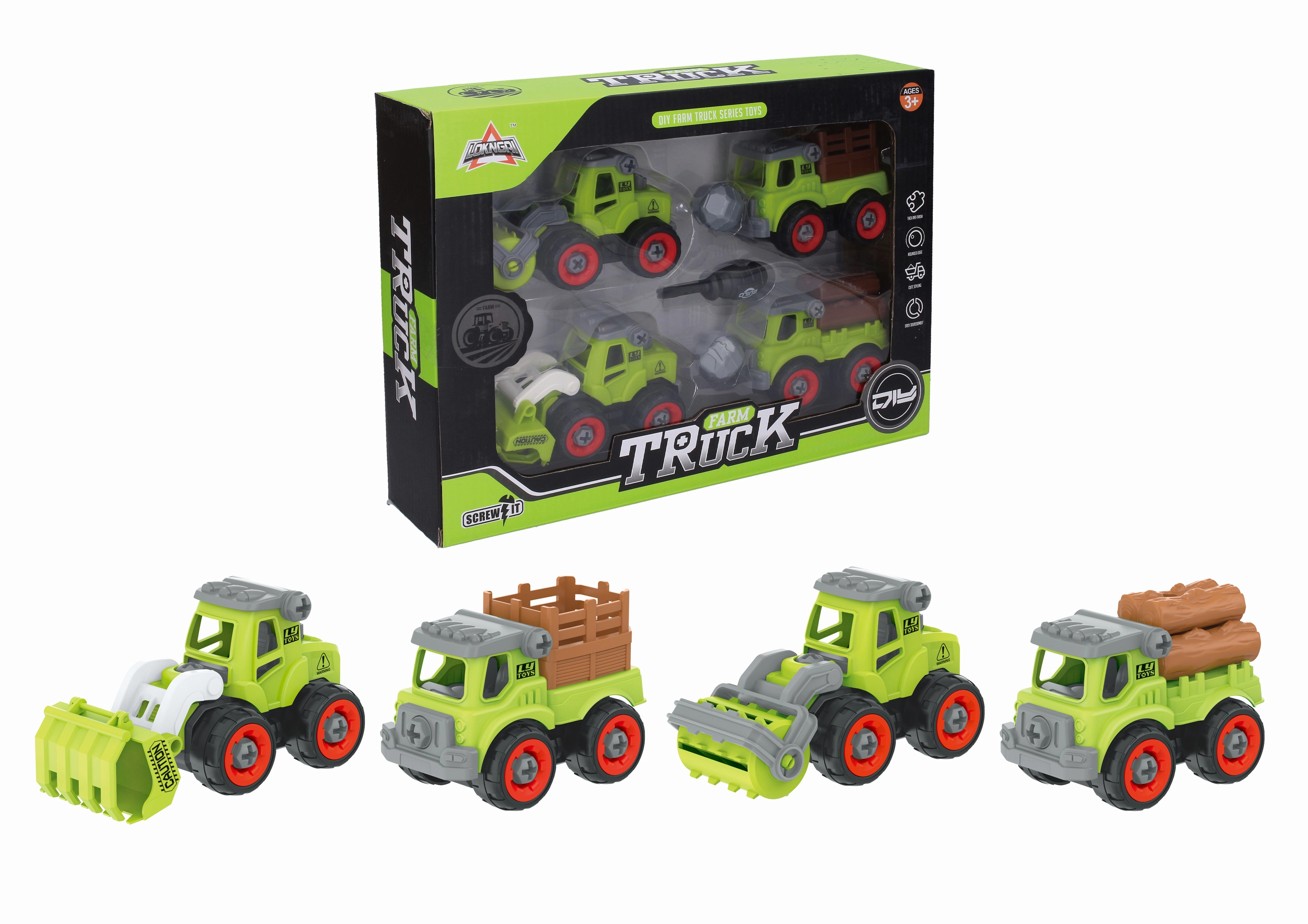 Varžtais sujungiami žemės ūkio automobiliai, kurių ilgis 13 cm, suteikia puikią pramogą mažiesiems mechanikams. Su laisvai riedančiais ratais ir komplekte esančiu atsuktuvu vaikai mėgausis valandomis žaidimų ir įgūdžių lavinimo.