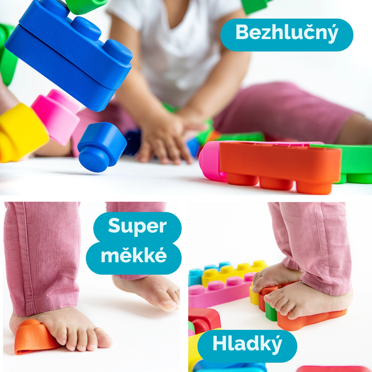 - Minkštą, saugią, vaikams draugišką medžiagą