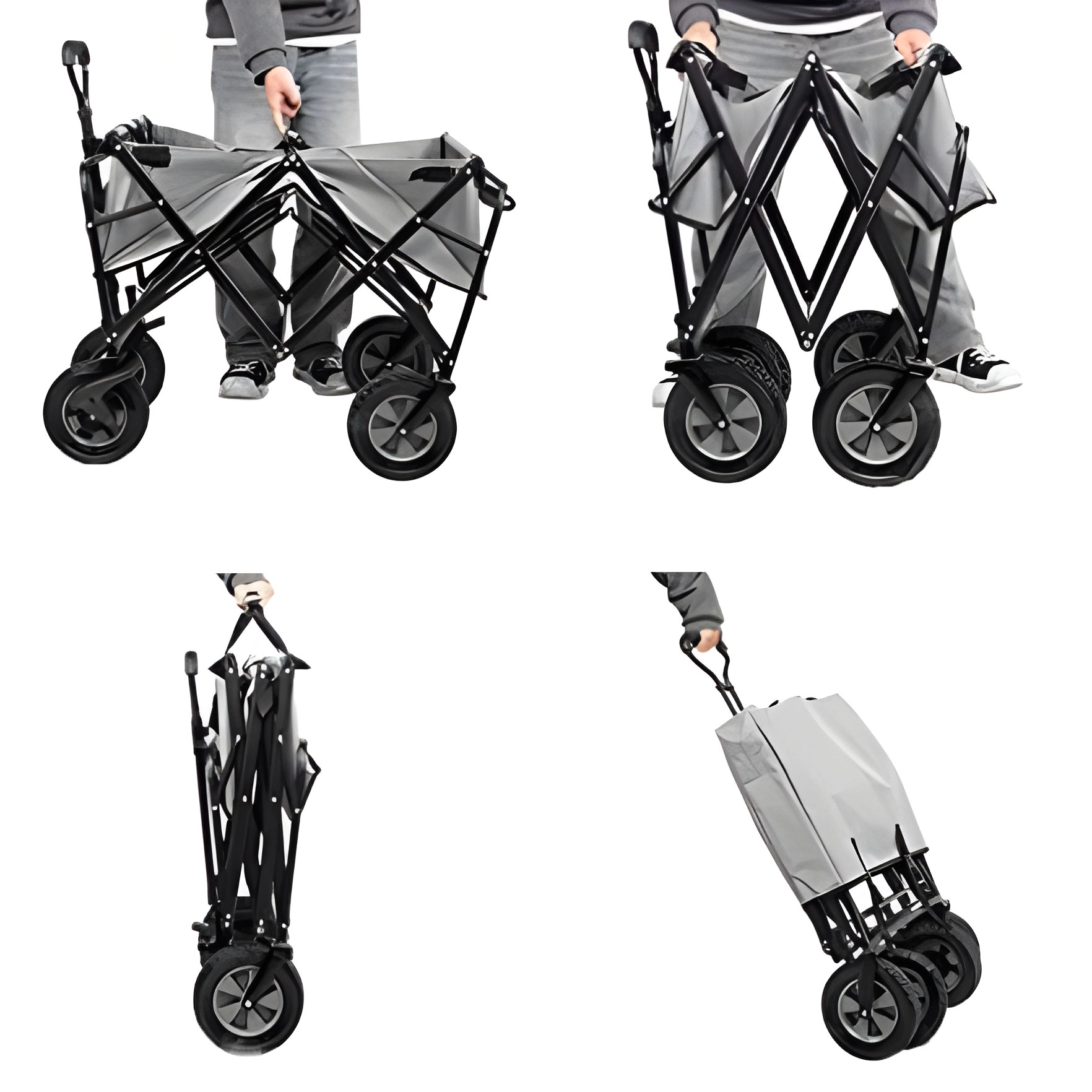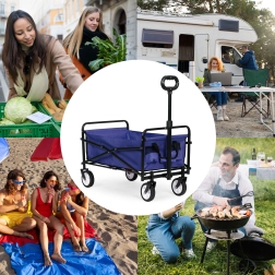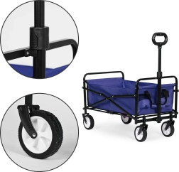 Šis praktiškas vežimėlis yra puikus sprendimas darbams sode, pirkinių pervežimui arba kaip pagalbininkas paplūdimyje. Dėl patogios rankenos, sulankstomo dizaino ir tvirtos metalinės konstrukcijos šis vežimėlis tinka bet kokiai situacijai ir palengvina įvairių daiktų transportavimą.