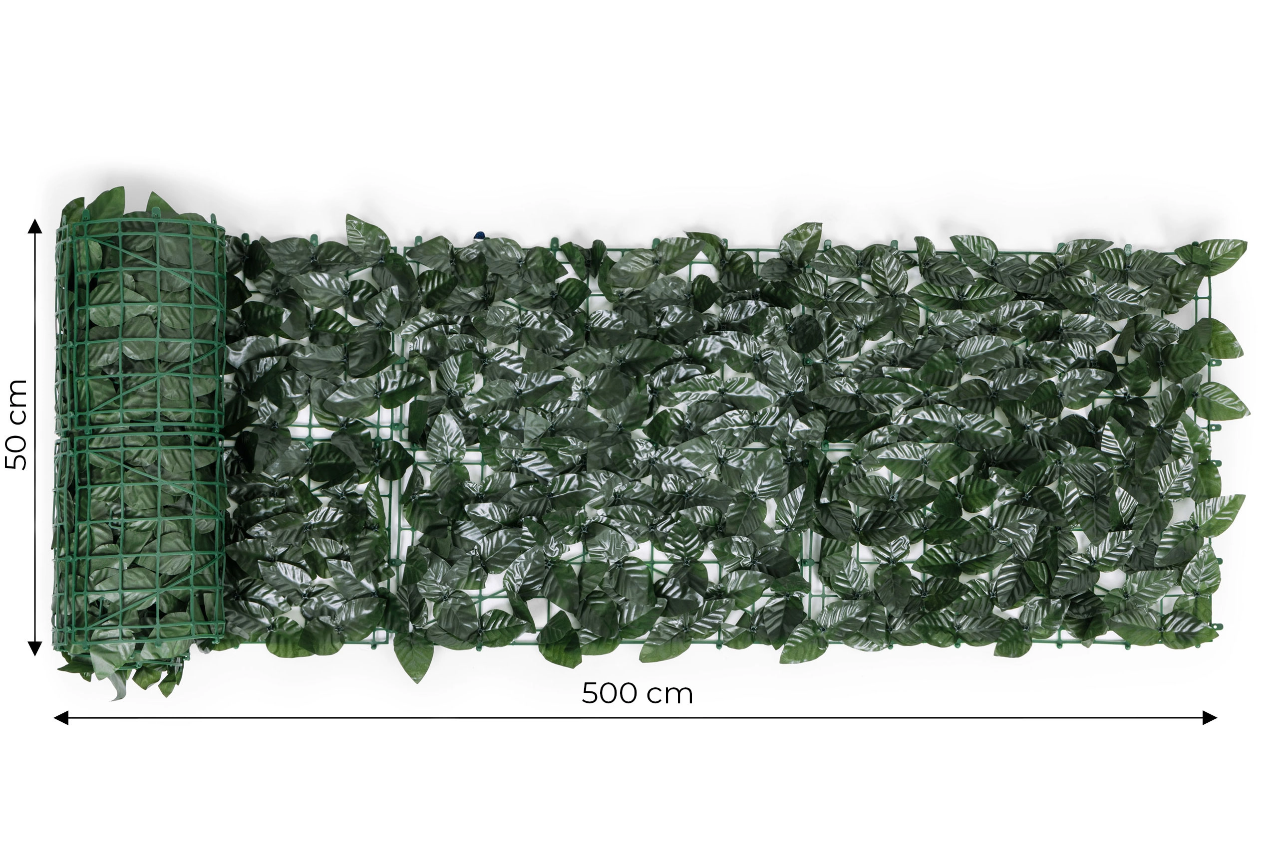 Dėl modulinės konstrukcijos kilimėlius lengva sujungti ir pritaikyti įvairiems paviršiams bei formoms. Kokybiški plastikiniai lapai su natūralia tekstūra yra atsparūs lietui, saulei ir UV spinduliams, todėl išlaiko spalvą ir formą daugelį sezonų. Montavimą atliksite patys – naudodami pridėtus užveržiamuosius dirželius greitai pritvirtinsite prie turėklų, tvoros tinklo ar pergolės.