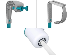 - Tvirtinimas prie vidinės baseino sienelės, reguliuojamas laikiklis lygiavimui su vandeniu