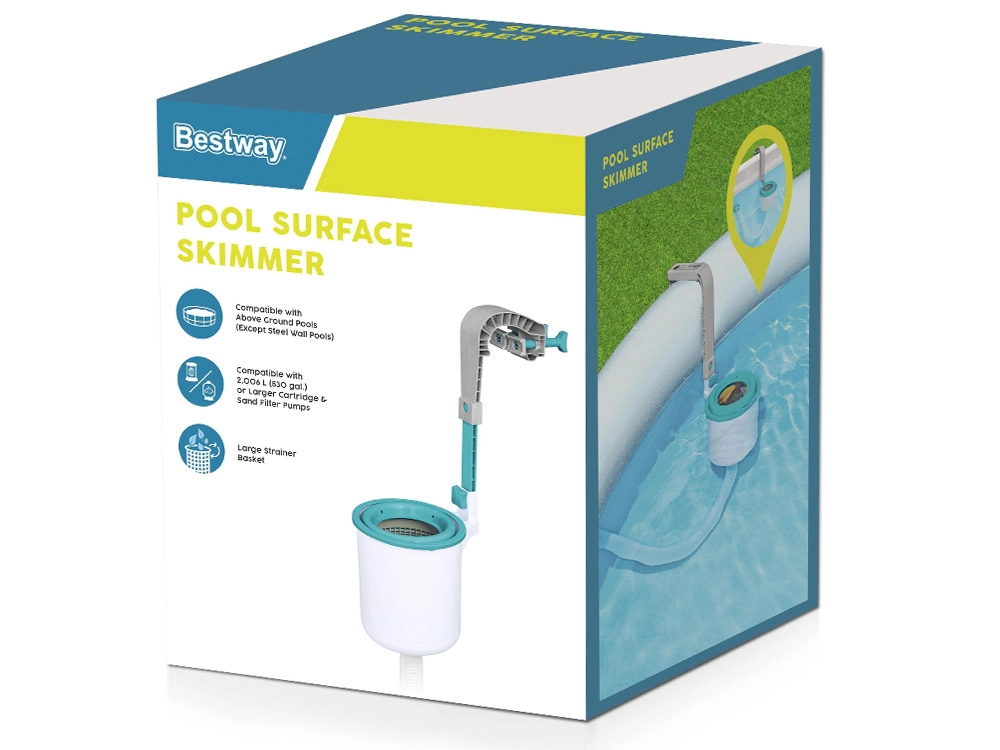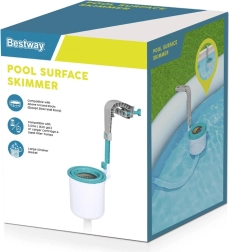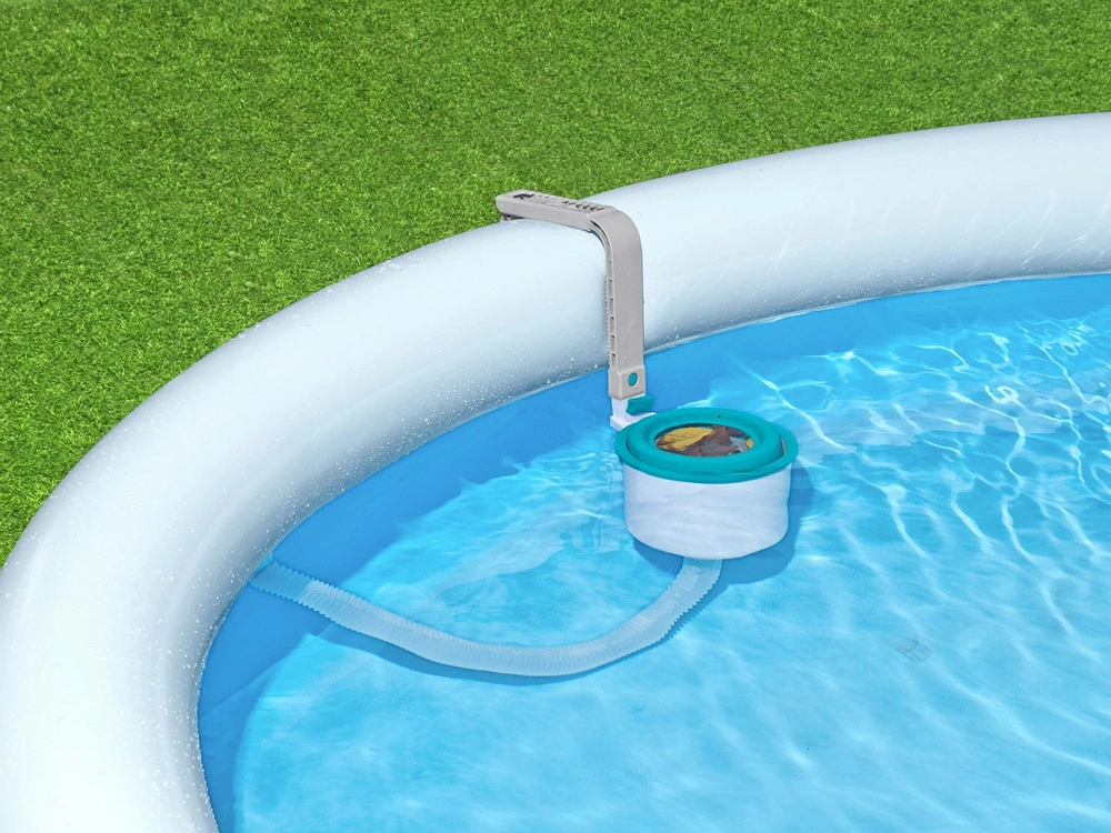 Paviršinis skimeris Bestway FlowClear – išmanus sprendimas kasdienei antžeminių baseinų vandens priežiūrai. Pritvirtinkite jį prie vidinės baseino sienelės netoli įsiurbimo, prijunkite prie filtravimo siurblio ir skimeris nuolat nukreips plūduriuojančias šiukšles į krepšelį. Kai krepšelis prisipildo, paprasčiausiai jį išimkite, ištuštinkite ir tęskite maudynes.