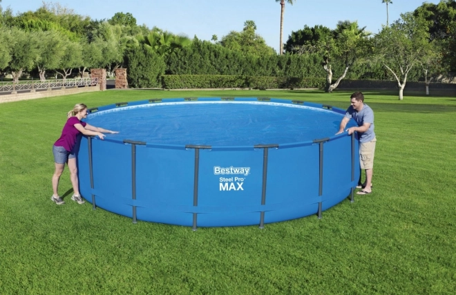 Saulės danga BESTWAY sukurta maksimaliam patogumui ir energijos taupymui. Burbuliuota plėvelė su dideliu oro kiekiu plūduriuoja paviršiuje, taip mažina garavimą ir riboja šilumos nuostolius. Saulės spinduliai prasiskverbia pro plėvelę ir padeda natūraliai šildyti vandenį, todėl maudysitės anksčiau ir ilgiau.