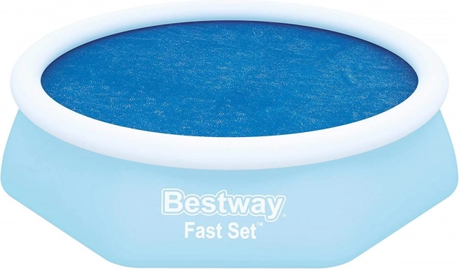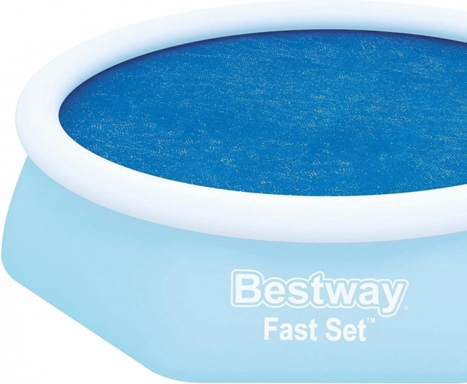 Praktiška saulės danga baseinams, kurių skersmuo 244 cm, iš BESTWAY Fast Set serijos, saugo vandenį nuo nešvarumų ir kartu padeda išlaikyti jo temperatūrą. Dėl lengvos konstrukcijos klojama tiesiai ant vandens paviršiaus, mažina garavimą ir sulaiko per dieną sukauptą šilumą. Danga yra atspari nešvarumams ir lengvai valoma.