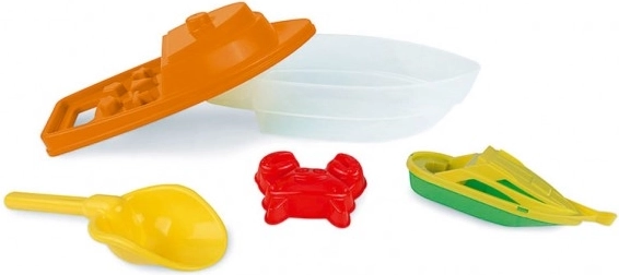 Šis spalvingas plastikinis laivelis – būtinas aksesuaras kiekvienam vaikui, mėgstančiam žaisti paplūdimyje. Rinkinyje yra ir įvairių formelių bei indelių, leidžiančių kurti smėlyje ir vandenyje.