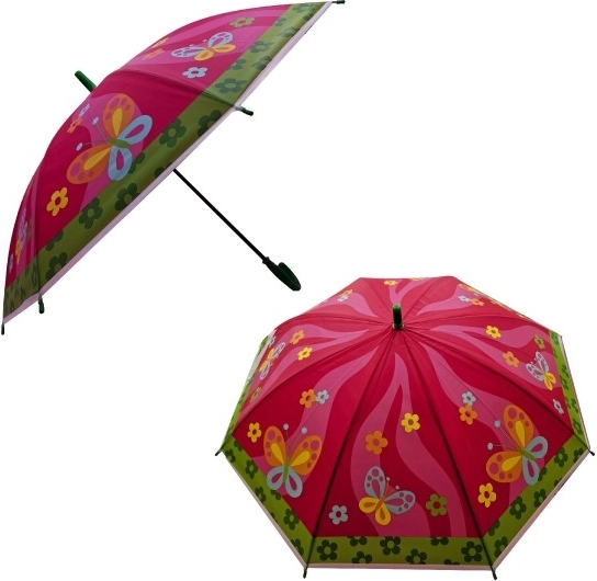 Patvari metalo ir plastiko kombinacija užtikrina patikimumą kasdien naudojant, o ryškūs motyvai (drugeliai, pelėdžiukas, ryklys, boružėlė) paverčia kiekvieną lietingą dieną pramoga. Matmenys 66 × 8 × 4 cm palengvina nešiojimą ir laikymą. Spalva ir motyvas parenkami pagal esamą pasiūlą.