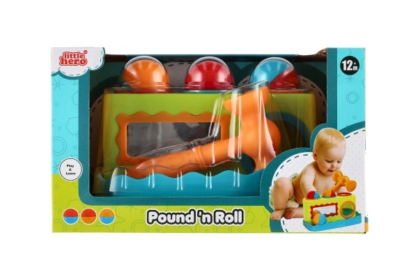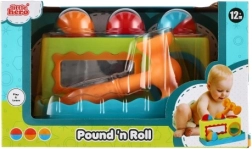 Šis 21 cm ilgio spalvingas plastikinis vazdeliojimo žaislas yra puikus pasirinkimas pirmajam lavinamajam žaidimui. Vaikai saugiai įkala tris kamuoliukus į paruoštas angas, taip lavindami suėmimą, jėgą ir tikslumą. Integruotas veidrodėlis priekyje didina sąveiką ir smagumą.