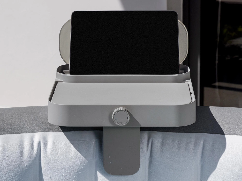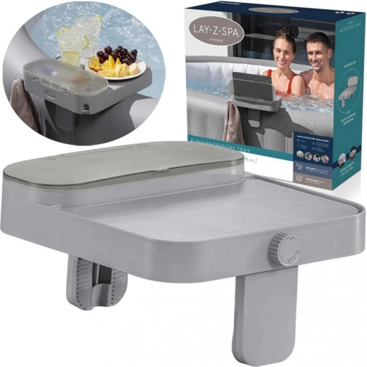 Mėgaukitės poilsiu sūkurinėje vonioje be kompromisų – daugiafunkcė Bestway 4‑i‑1 lentynėlė visiems LAY‑Z‑SPA modeliams visada palaikys gėrimus, telefoną, planšetinį kompiuterį ir smulkmenas po ranka. Ji siūlo stalelį, nuo aptaškymų apsaugotą daiktadėžę, rankšluosčių kablį ir planšetės laikiklį viename. Dėl reguliuojamų žnyplių (5–25 mm) ją greitai ir stabiliai pritvirtinsite prie sūkurinės vonios krašto.