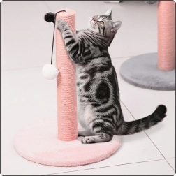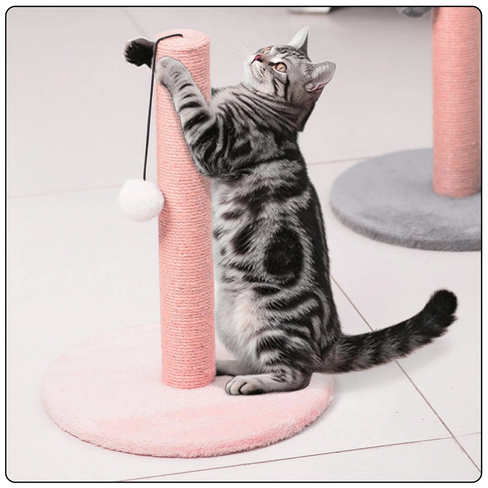 Praktiška katėms skirta draskyklė, stabilaus stulpelio su rožiniu pagrindu pavidalo, siūlo natūralų nagų galandinimą, pramogą su kabančiu pomponu ir patvarų sizalio apvyniojimą. Tvirta konstrukcija ir malonios medžiagos padeda apsaugoti jūsų baldus nuo subraižymo ir suteikia augintiniui higienišką bei patogią vietą žaidimams.