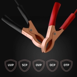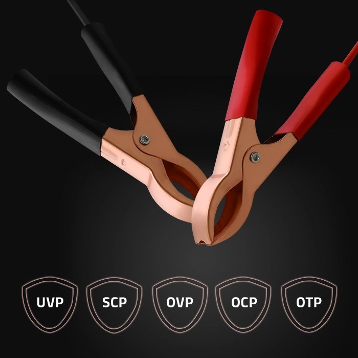 Greitas pajungimas: raudoną gnybtą prijunkite prie + poliaus, juodą – prie – poliaus, pasirinkite režimą ir įkrovimas gali prasidėti. Kompaktiška ir patvari konstrukcija patogi naudoti namuose ir dirbtuvėse.