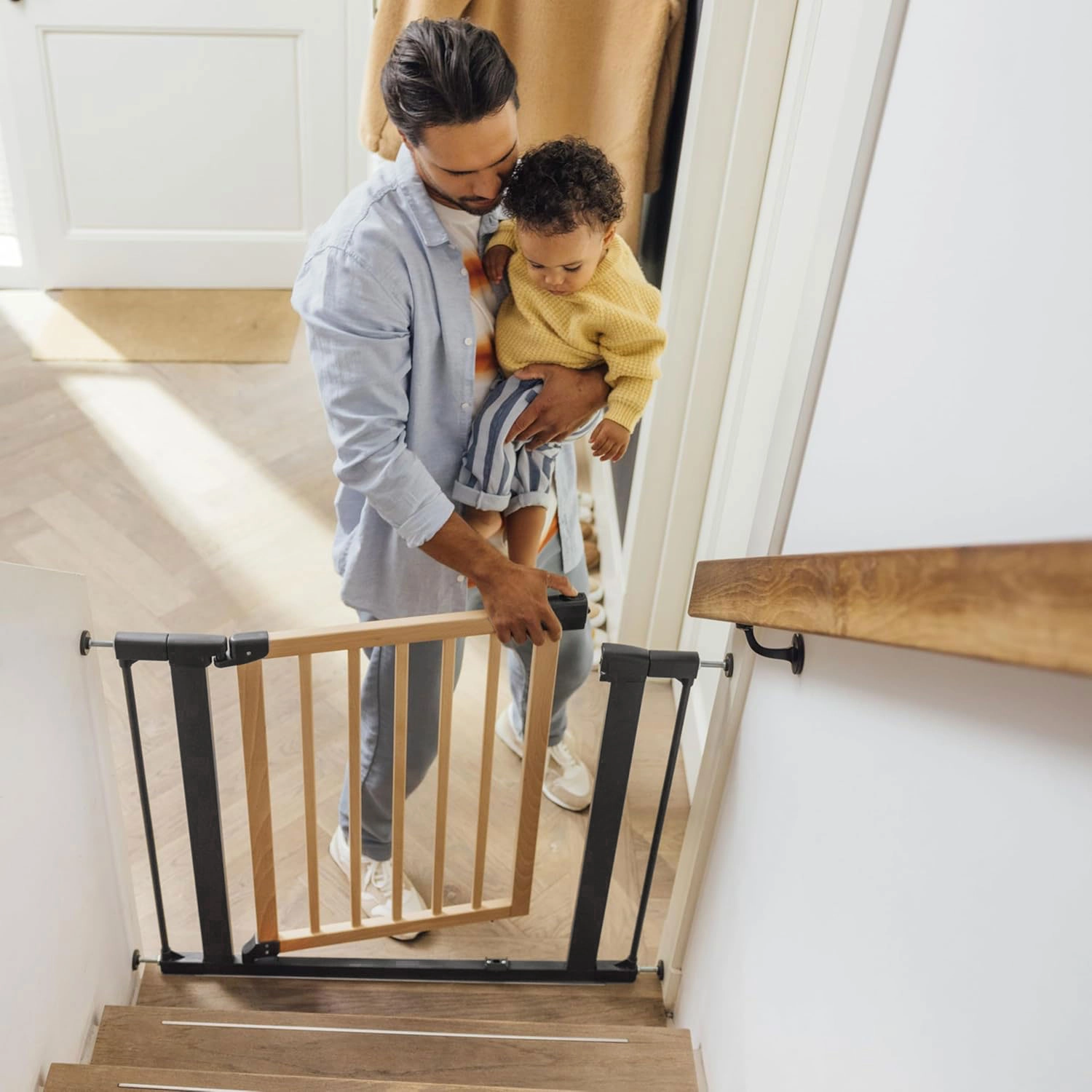Specialus saugos mechanizmas neleidžia vaikams atidaryti užtvaros. Dvipusis atidarymas, automatinis užsidarymas ir valdymas viena ranka užtikrina patogų naudojimą.