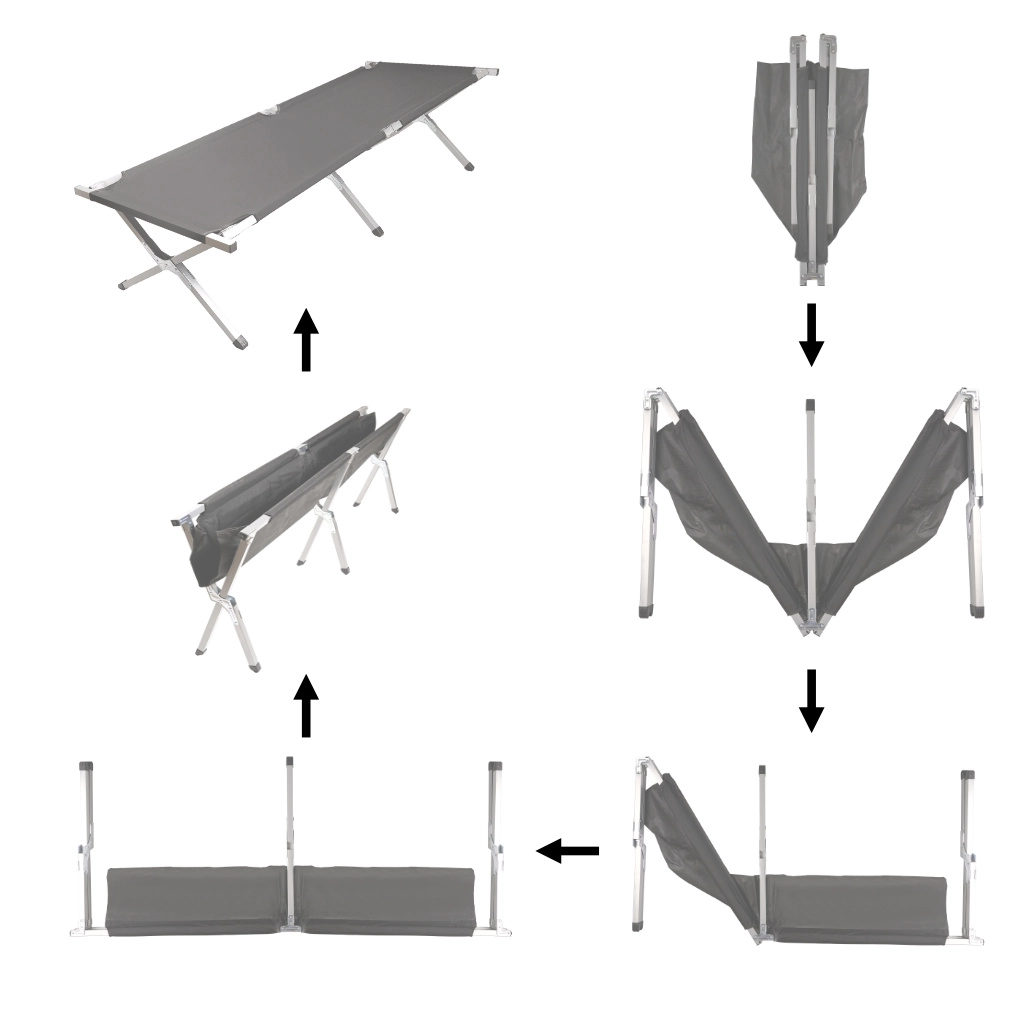 Mėgaukitės ramiu miegu bet kur – nuo stovyklavietės ir sodo iki sodybos. Šis sulankstomas lauko gultas derina tvirtą plieninę konstrukciją su atspariu 600D poliesterio užvalkalu, kuris lengvai prižiūrimas ir neįgeriantis. Dėl kompaktiškų matmenų sulanksčius ir pridėto dėklo su rankena jį paprasta nešti ir laikyti.