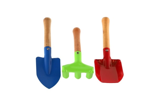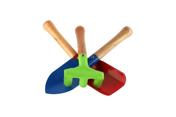 Trys pagrindiniai įrankiai – semtuvėlė, kastuvėlis ir grėbliukas – leis vaikams kasti, persodinti ir purenti dirvą. Viskas idealaus dydžio vaiko rankai.