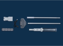 Siurblys, prailginimo dalys, specialus valymo antgalis, įkrovimo kabelis, instrukcija, spalvota pakuotė
