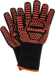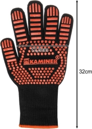 Šios karščiui atsparios KAMINER pirštinės sukurtos dirbti su karštais indais, grotelėmis ir kepimo skardomis. Tvirta daugiasluoksnė konstrukcija su preoksiduoto pluošto priemaiša ir silikoniniu neslystančiu paviršiumi užtikrina patikimą suėmimą ir trumpalaikę apsaugą nuo aukštų temperatūrų gaminant ir kepant ant grilio.