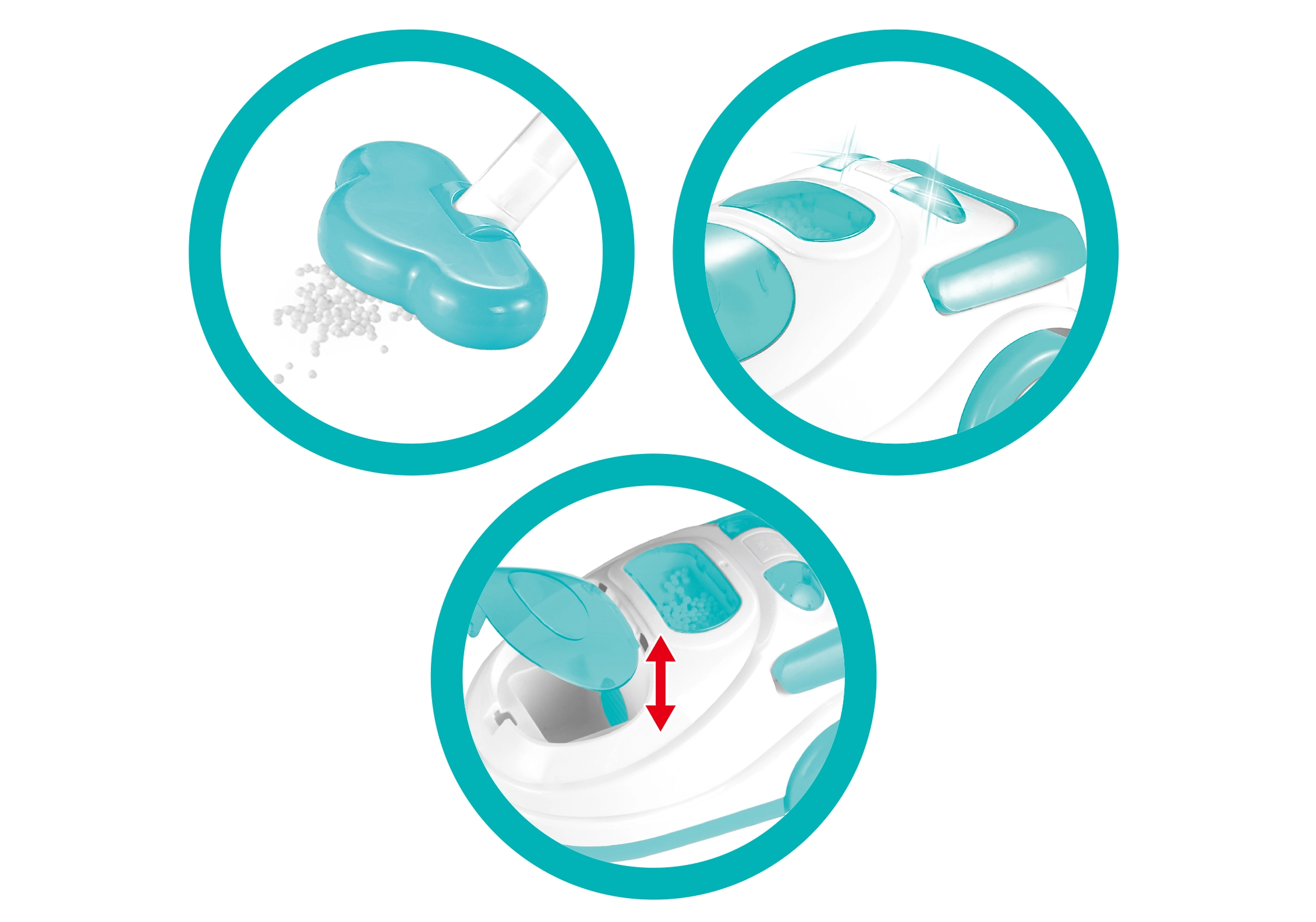 - Yra plastikiniai kamuoliukai patogiam „siurbimui“.