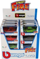 Ikoniška BBURAGO STREET FIRE serija siūlo puikius metalinius automobiliukus 1:43 masteliu, pasižyminčius realistiška išvaizda ir patvaria konstrukcija. Dėl kompaktiškų matmenų (apie 9 × 4 cm) jie puikiai tinka žaidimams namuose ir kelionėse, o taip pat gražiai atrodo kiekvieno kolekcininko vitrinose.