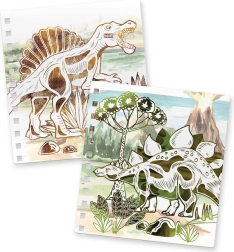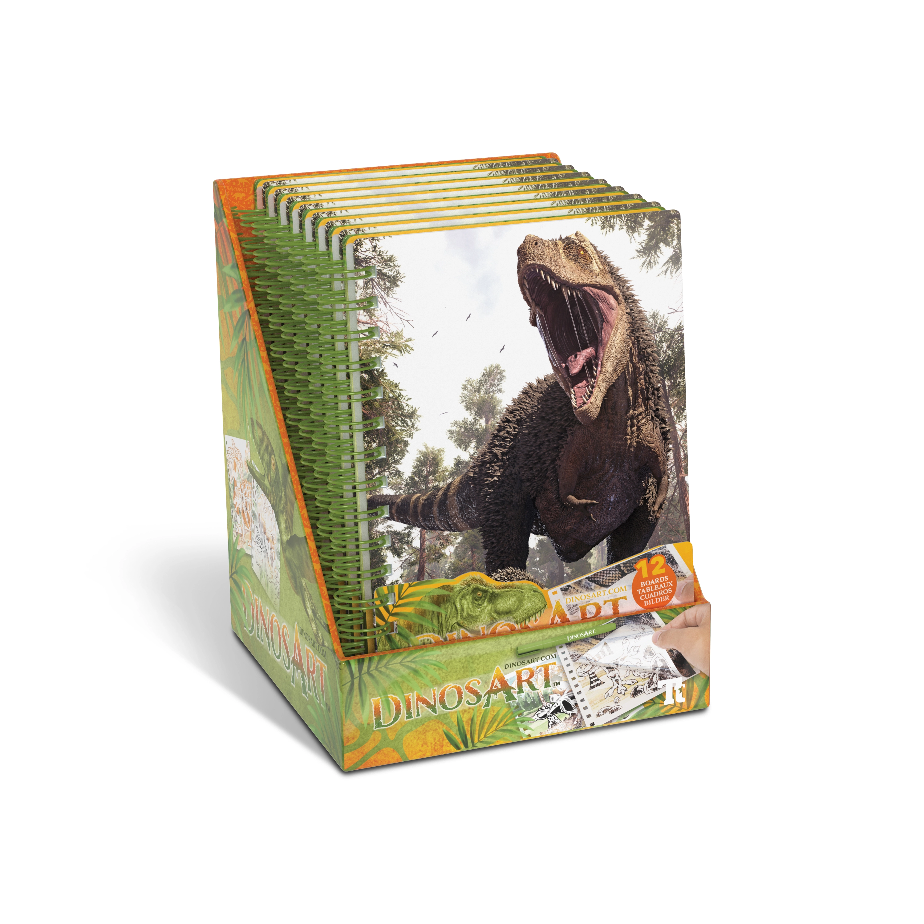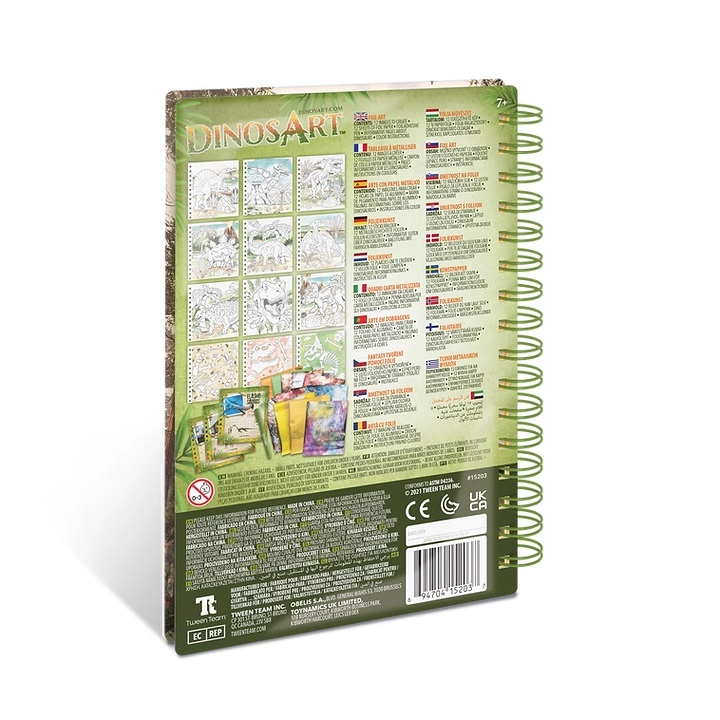 DinosArt folijinių piešimo lapų rinkinys jungia smagų kūrybą ir dinozaurų pasaulio pažinimą. Dėka folijinio klijuojamo rašiklio ryškios folijos lengvai perkeliamos ant pažymėtų vietų, todėl be netvarkos sukuriami įspūdingi blizgūs vaizdai. Vaikai lavina smulkiąją motoriką, kantrybę ir kūrybiškumą.