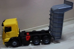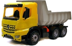 Šis vaikiškas savivartis Mercedes Giants Dump Truck suteikia vaikams neįtikėtinai daug pramogų. Triašis AROCS modelis turi realistišką dizainą, įskaitant geltoną kabiną, juodą važiuoklę ir sidabrinę kėbulą.