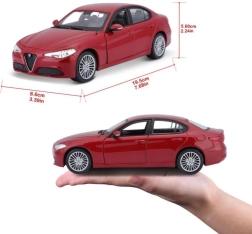 Šis preciziškai pagamintas metalinis modelis ALFA ROMEO GIULIA (2016) elegantiškos raudonos spalvos ištikimai atkuria realų automobilį – nuo būdingų kėbulo linijų iki detalaus interjero. Dėl kokybiško die-cast apdirbimo jis tinka tiek ekspozicijai, tiek visų amžiaus grupių kolekcionierių džiaugsmui.