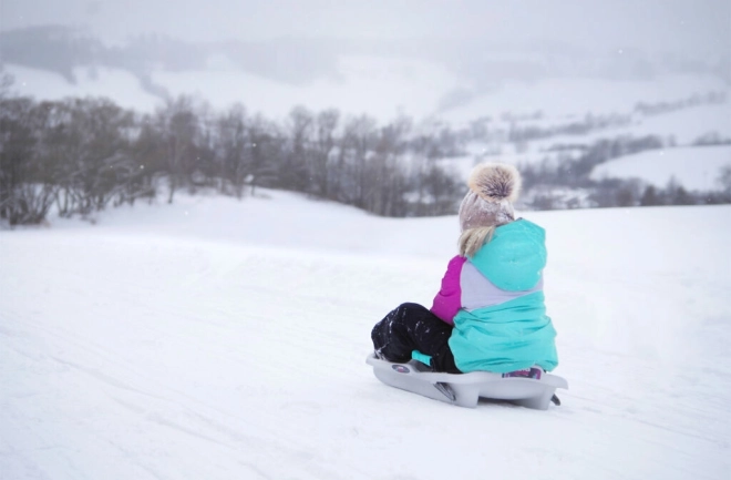Tvirta plastikinė vienos slidės bazė yra patvari ir kartu lengva, idealiai tinkama dažnam naudojimui kalvose.