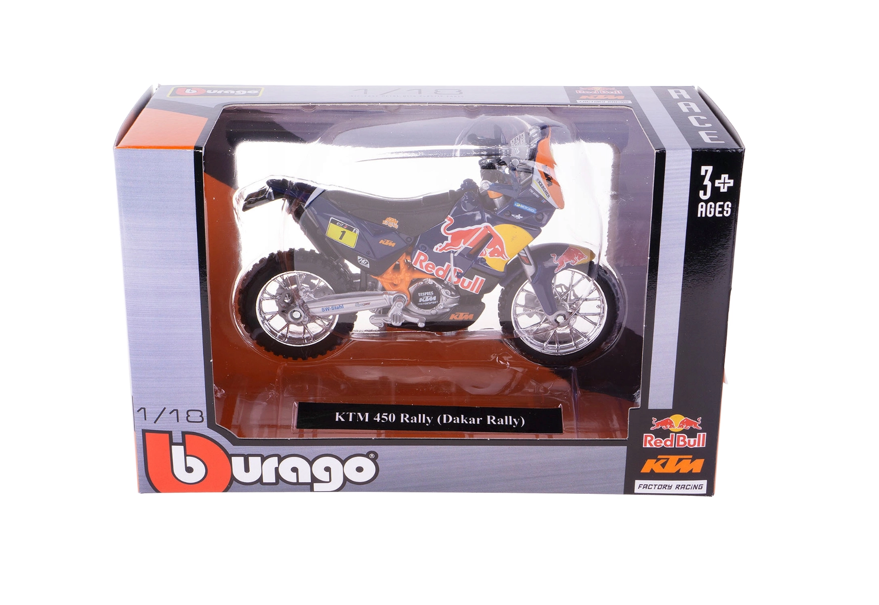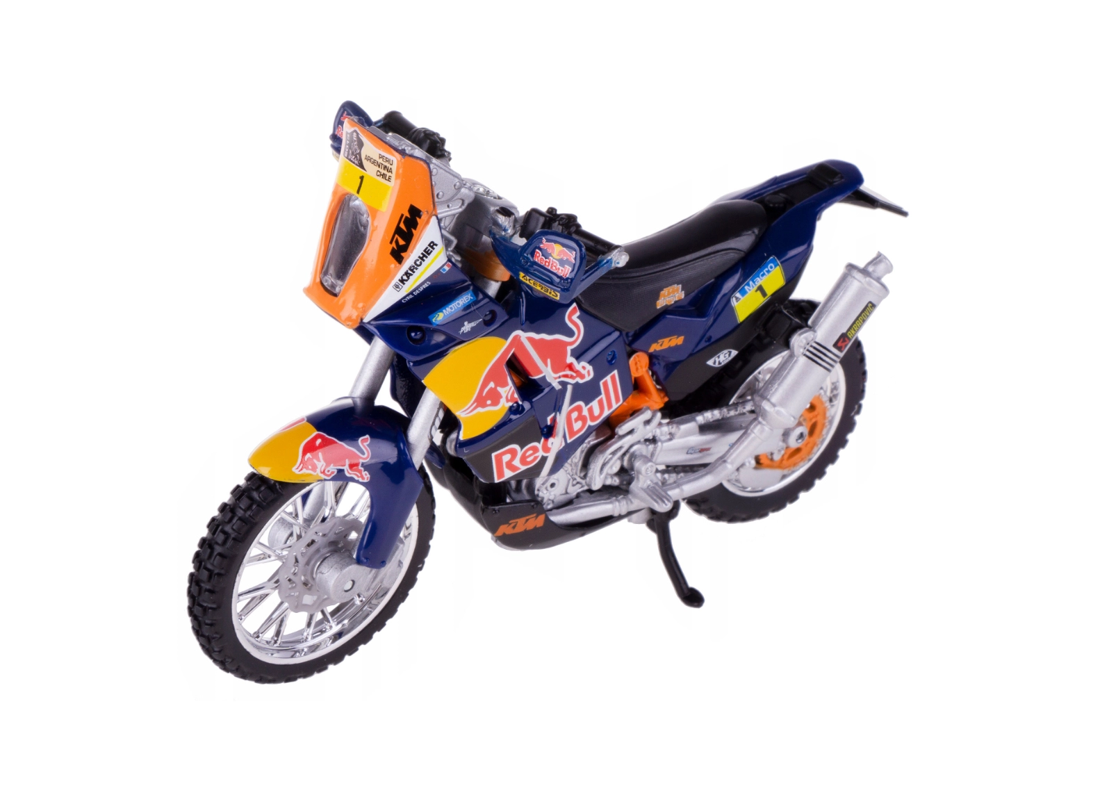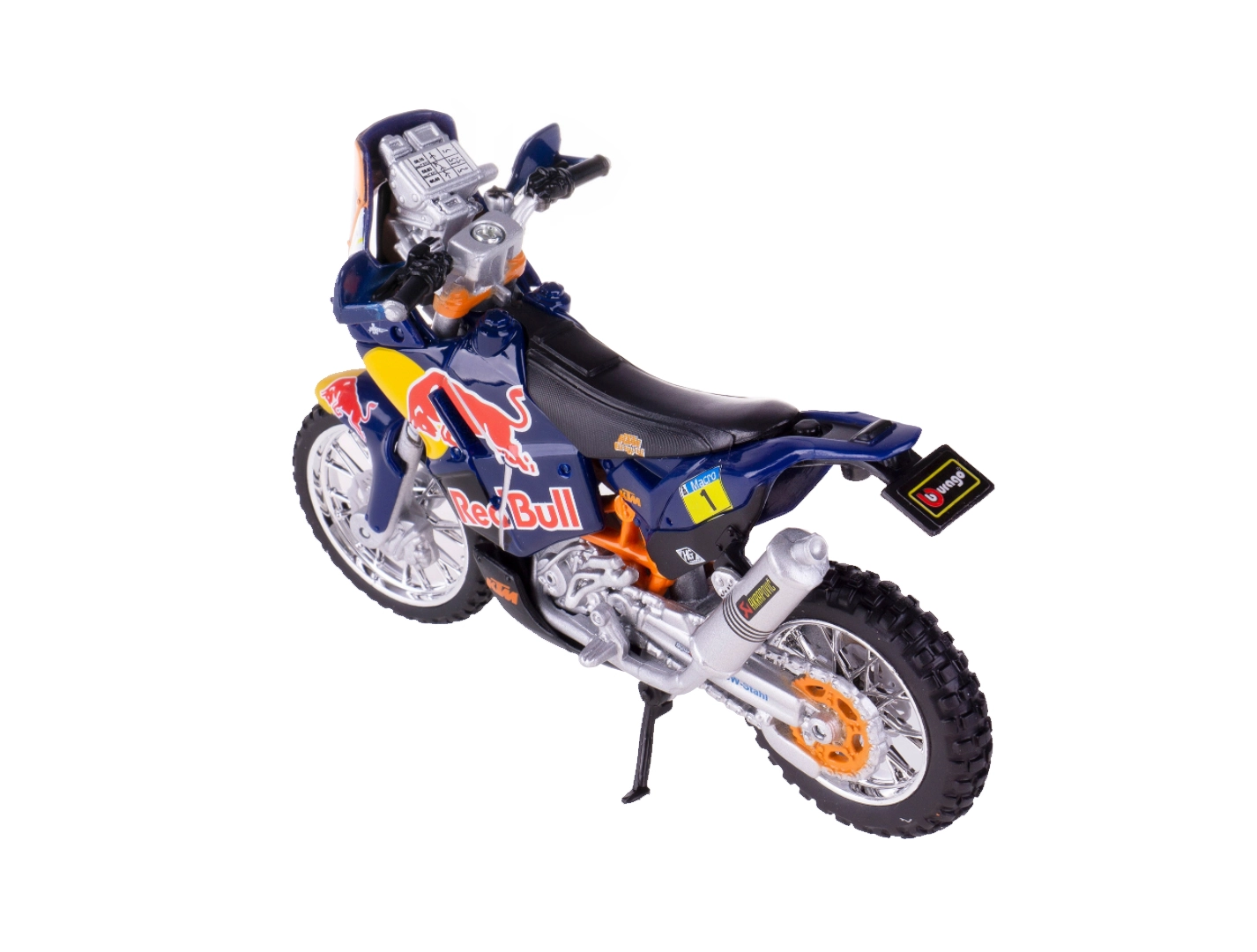 Atraskite precizišką lenktyninio specialaus Red Bull KTM Factory Racing modelio repliką, sukurtą legendiniam Dakar Rally. Bburago modelis masteliu 1:18 išsiskiria kokybišku metaliniu korpusu, kruopščiai perteiktomis plastikinėmis detalėmis ir autentiškomis komandos spalvomis.