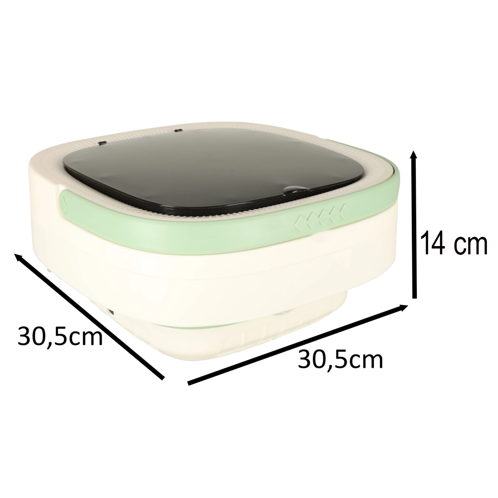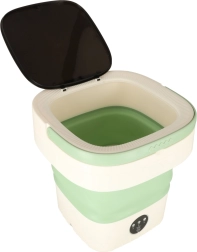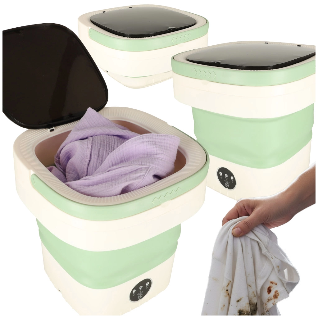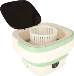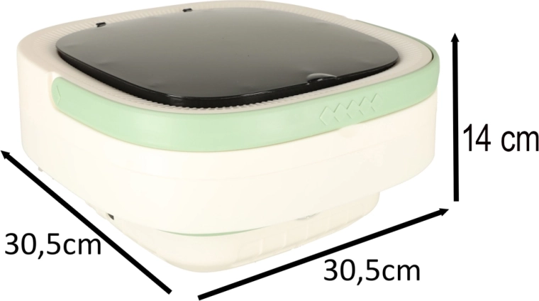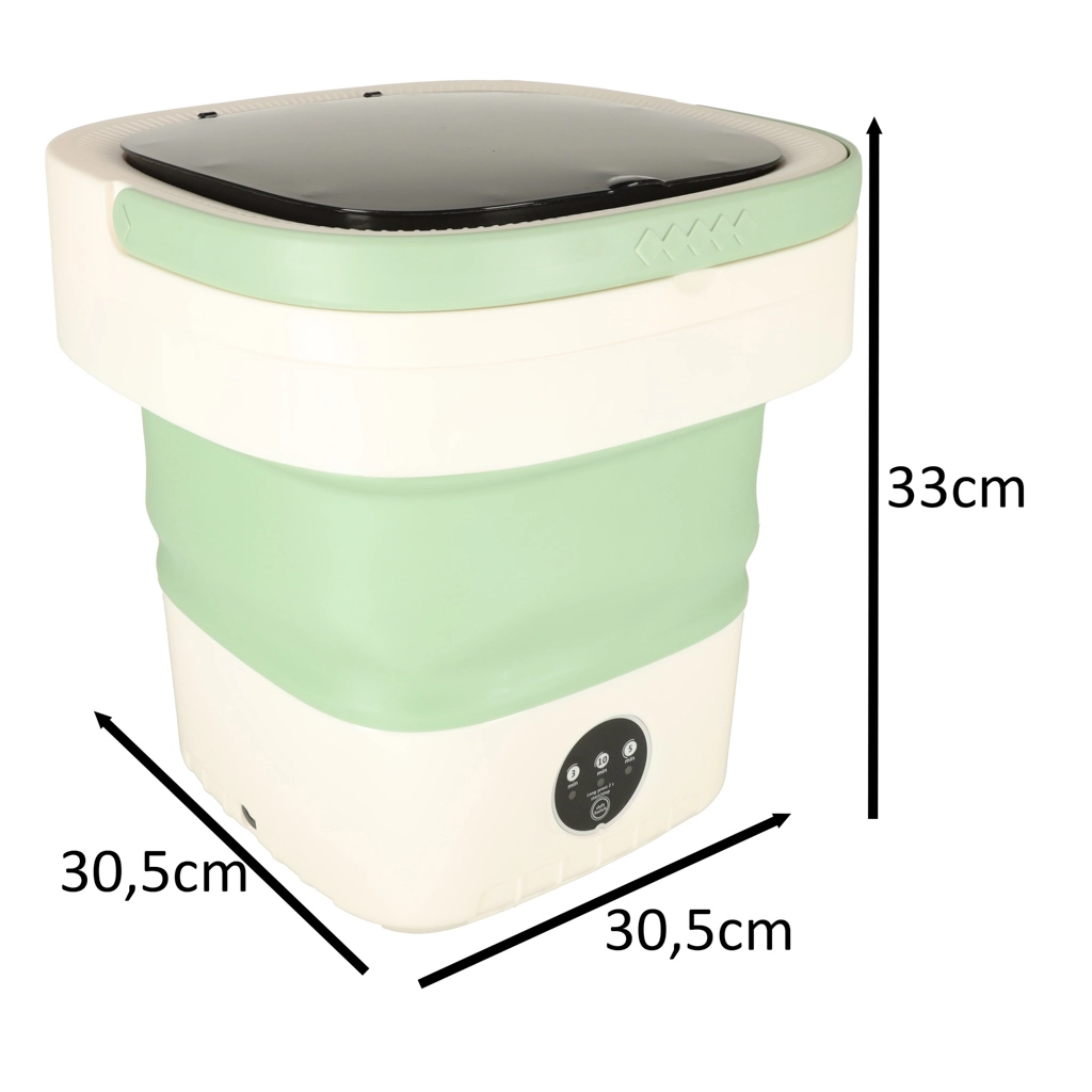 Su šia nešiojamąja skalbimo mašina išsiskalbsite marškinėlius, apatinius ar vaikiškus drabužius bet kur – tereikia vandens ir 12 V elektros. Silikoninis sulankstomas korpusas taupo vietą, todėl lengvai telpa į lagaminą ar kuprinę, o patogi rankena užtikrina lengvą nešiojimą.