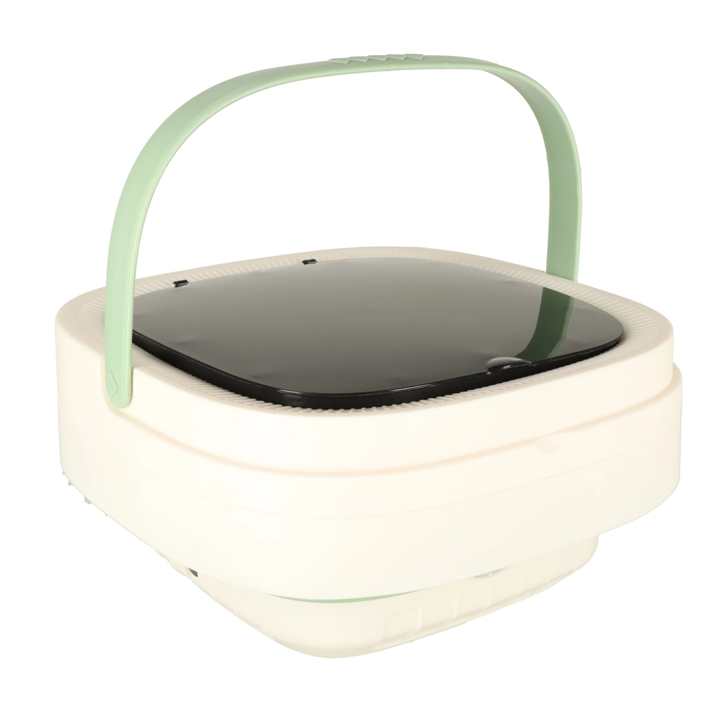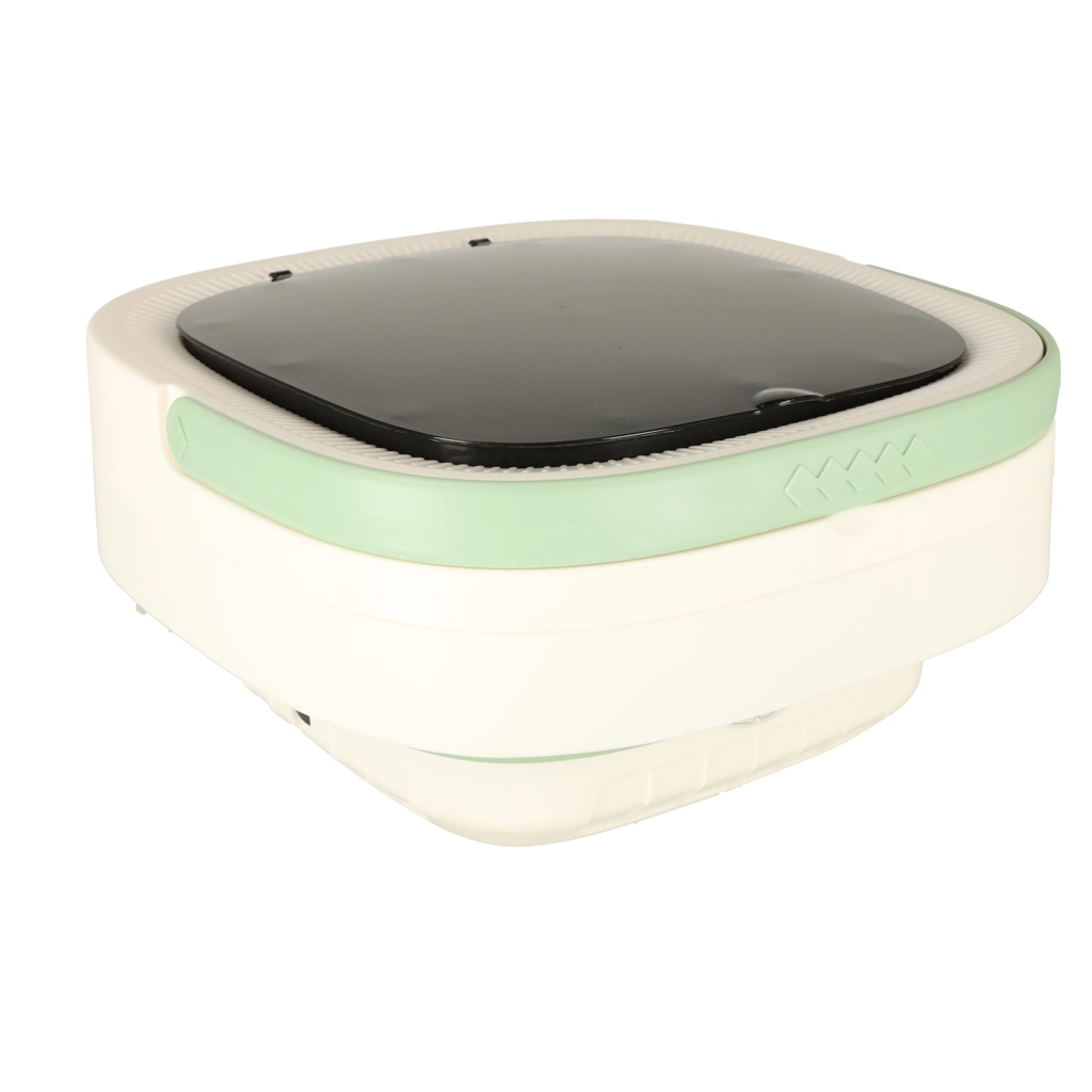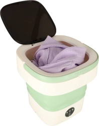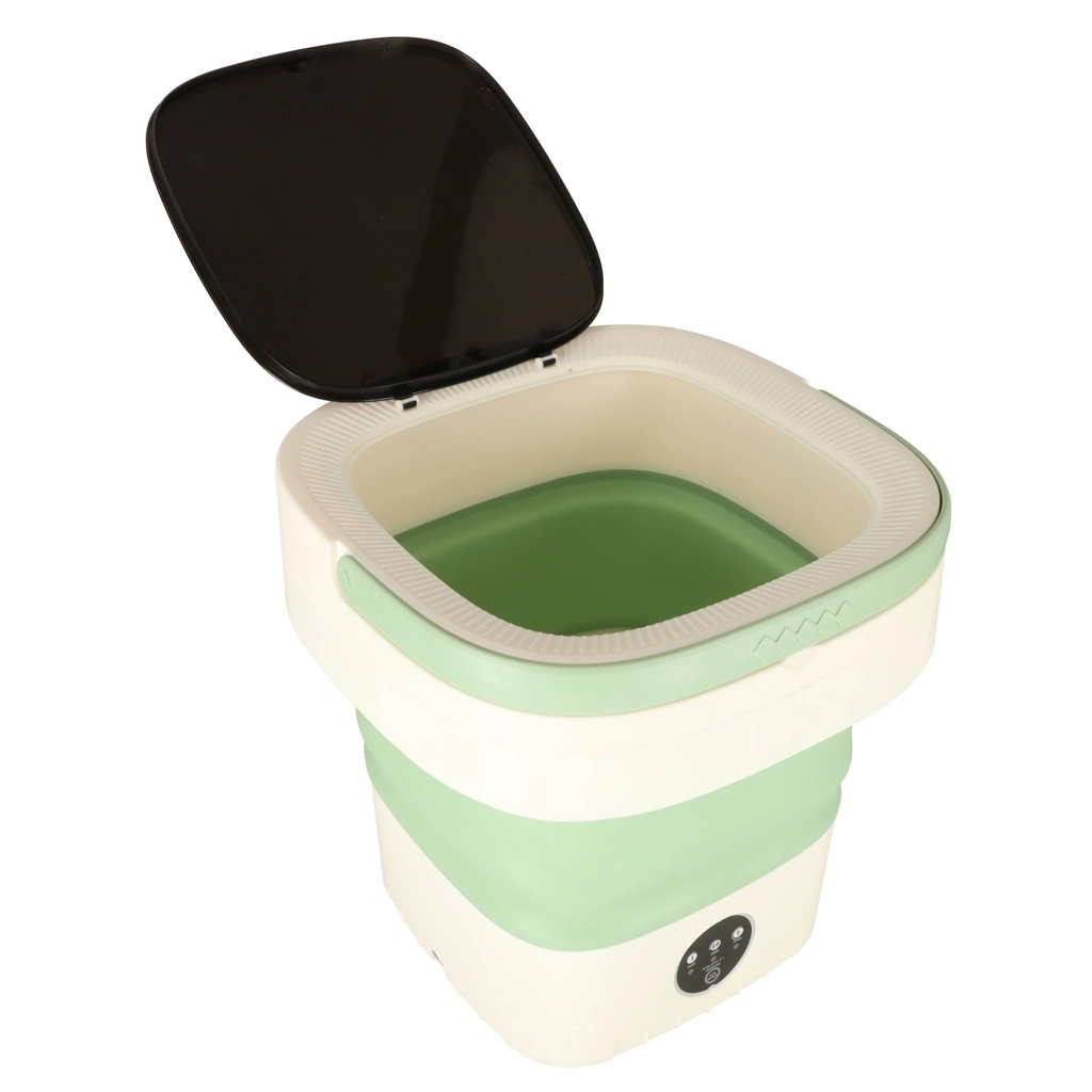 Su šia nešiojamąja skalbimo mašina išsiskalbsite marškinėlius, apatinius ar vaikiškus drabužius bet kur – tereikia vandens ir 12 V elektros. Silikoninis sulankstomas korpusas taupo vietą, todėl lengvai telpa į lagaminą ar kuprinę, o patogi rankena užtikrina lengvą nešiojimą.