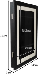 Stilingas rėmas A4 formato vaikų piešiniams, talpinantis iki 150 darbų. Dėl atsiveriančios priekinės dalies ir magnetinio uždarymo ekspoziciją pakeisite lengvai ir greitai, nenukabindami nuo sienos. Saugios medžiagos (akrilas vietoje stiklo, MDF) ir paprastas montavimas be gręžimo su bekvapiais kabliukais daro šį rėmą idealiu pasirinkimu vaikų kambariui.