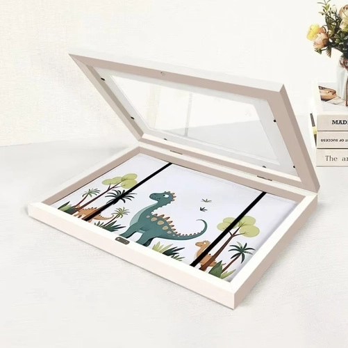 Išsaugokite prisiminimus apie vaikų kūrybą stilingai ir tvarkingai. Rėmelis, talpinantis iki 150 A4 lapų, siūlo greitą įdėjimą ir keitimą dėl atidaromos priekinės dalies. Magnetinis uždarymas ir elastinės juostos išlaiko piešinius puikios būklės be glamžymo.