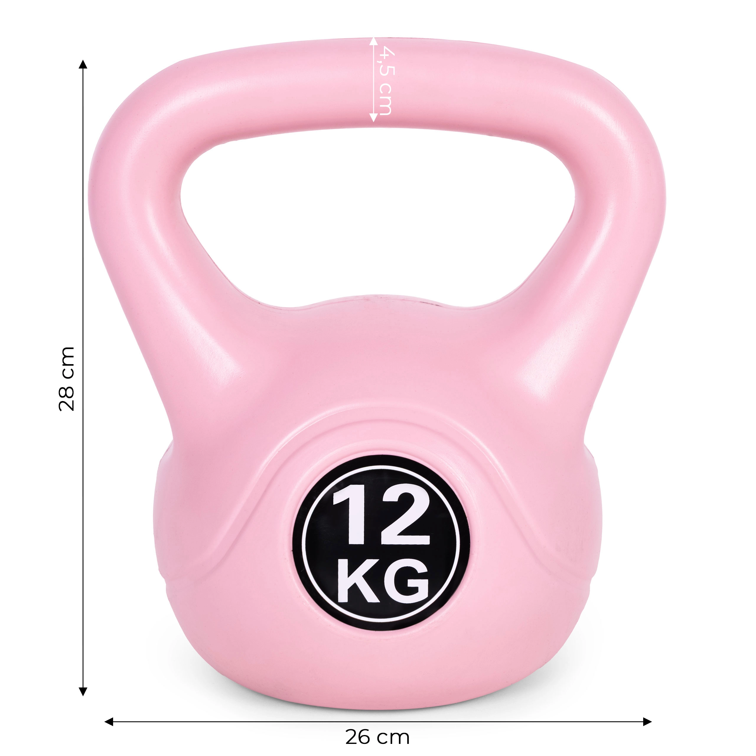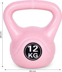 Universali rožinė 12 kg kettlebell giria skirta jėgai, stabilumui ir ištvermei. Siūlo ergonomišką rankeną, plokščią dugną stabilumui ir patvarią konstrukciją iš plastiko su cemento šerdimi – ideali tiek pradedantiesiems, tiek pažengusiems, taip pat funkcinei treniruotei ir reabilitacijai.