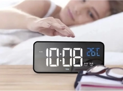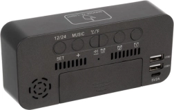 Baterijos režime ekranas įsijungia plojimu arba balsu, o maitinant iš tinklo šviečia nuolat. Pabudimą pritaikysite pasirinkdami 25 melodijas ir reguliuojamą garsumą. Žadintuvas taip pat rodo laiką 12/24 val. formatu, datą, dieną ir temperatūrą °C arba °F – visi svarbūs duomenys vienoje vietoje.